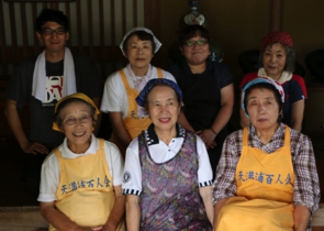約30年前、天満浦に住むおかあさんたちのPTA活動から集まった仲間たちが、まちを元気にしようという想いで、自分たちができることを地道に楽しく続けてきました。 天満浦百人会は、21世紀の幕開けと共に「天満浦を元気にしよらい!」を合言葉に、仲間たちで結成。活動をはじめました。「百人会」という名前は、多くの皆さんの協力によってまちづくりをしたいという願いをこめてつけました。※100人もいません(笑) 結成当時は、災害時の炊き出しや、高齢者の見守り活動の配食サービスのための厨房の自前建設を大きな目標として、地区の特産品である甘夏みかんのマーマレードや竹ようかん、小さな焼き物のお地蔵さんなどを作っては市内の物産展などで販売を行ってきました。 そんな私たちが、大きな転機を迎えたのが「夢古道おわせ」のスカイフードレストランへの出店です。これを機に、任意団体から少しでも社会的な責任ある団体として成長していくために、NPO法人化を図り、2007年6月に、現在の「NPO法人天満浦百人会」として新しいスタートを切り、厨房「笑福工房」も自費で建てました。 そして天満浦のシンボルでもある大正14年築の「天満荘」を、中部電力から百人会で購入し、2010年にオープンしました。カフェの運営とともに文化講座や体験活動などを積極的に行っています。
