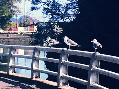 港沿いの道ではひものの天日干し。これも天満浦の風物詩です。 |