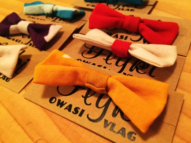 初めに蝶ネクタイをつくった理由は、尾鷲の大漁旗染職人・万助屋の山本さんから「フライキ」とお聞きした時、「Fly」という単語を言葉の音だけでイメージしたことからはじまりました。